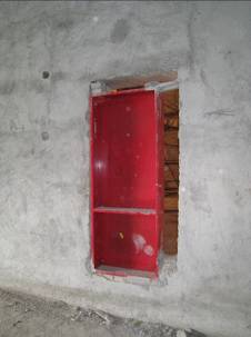 通過上面對(duì)房間隔聲量的分析,可以知道墻面的厚度對(duì)隔聲量有著較為直接的影響,故在房間設(shè)計(jì)的過程中,要盡量減少在演播室的外墻嵌入消防箱的做法。如圖3所示,可以看到嵌入的消防箱厚度接近墻面厚度的一半,也就是這一部分的墻面隔聲量會(huì)有明顯的降低,從而降低房間整體的隔聲量。在這種情況下,就需要與消防公司進(jìn)行充分的溝通,在不影響消防安全的前提下,修改消防箱的位置或者改嵌入為外裝,從最大程度上減少對(duì)墻體的損害。
