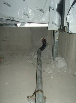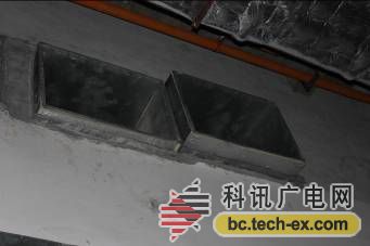 雖然不是每間演播室都會(huì)有排水管,但是當(dāng)我們?cè)诂F(xiàn)場(chǎng)勘查的過程中,發(fā)現(xiàn)了這種情況,一定要及早的向設(shè)計(jì)方提出質(zhì)疑,并協(xié)調(diào)更改管線的走向。如圖4,為演播室房內(nèi)部穿過的排水管,它不但給演播室?guī)砹瞬槐匾脑肼?,同時(shí)也有漏水損害設(shè)備及人員的安全隱患,對(duì)于此類的問題需要有較強(qiáng)的協(xié)調(diào)能力及原則性。