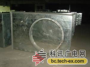 空調(diào)系統(tǒng)是破壞演播室墻體結(jié)構(gòu)最大的因素,為了確保演播室的制冷量,通??照{(diào)管道尺寸較大,故對(duì)墻面的破壞是不可避免的,如圖6所示為空調(diào)系統(tǒng)的穿過墻面的進(jìn)、回風(fēng)口。在聲學(xué)設(shè)計(jì)的過程中,會(huì)在空調(diào)管道以下做一層隔聲層,來有效的彌補(bǔ)空調(diào)對(duì)房間隔聲量的破壞,如圖7所示,為石膏板錯(cuò)縫拼接的隔聲層結(jié)構(gòu)。但是對(duì)空調(diào)管道的封堵,也不能忽視,只有把空調(diào)管道的外壁與墻面嚴(yán)密封堵,才能從有效的降低外界噪聲對(duì)其影響。由于空調(diào)管道尺寸較大且內(nèi)壁光滑,通常對(duì)聲音的反射十分有效,故在空調(diào)的安裝過程中,出風(fēng)口位置會(huì)增加帶有吸聲材料的消聲裝置,如圖8所示為空調(diào)的消聲管道,它是由穿孔金屬板內(nèi)填充多孔吸聲材料制成,對(duì)高頻有較好的吸聲效果。同時(shí)演播室這類空調(diào)的出風(fēng)口位置,會(huì)避免使用一些較薄的風(fēng)葉材料來避免它產(chǎn)生二次噪聲。
