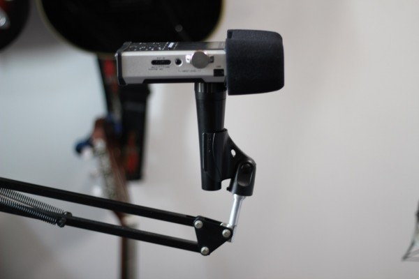 圖十二:合體圖①,手持配件不單可以用于手持,也可以配合話筒架,這么玩兒……附贈的海綿防噴罩外形并不那么好看,但是功能性是非常好的。