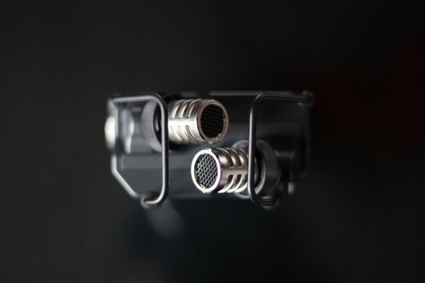 圖八:內(nèi)置的是一對XY制式的立體聲電容話筒,配備了防震支架(減少手持時的晃動),以及防摔護架。