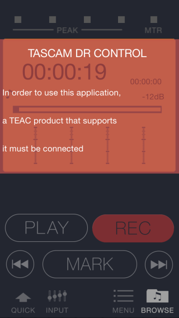 圖十七:主界面會提示需要連接上TEAC的設備,似乎預見將會有越來越多的TASCAM產(chǎn)品會支持WIFI無線控制的。