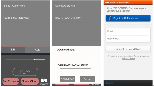 在未連接DR-44WL時,可以瀏覽從DR-44WL上傳輸?shù)绞謾C的音頻文件,也可以獲取新固件以及將音頻文件直接上傳到SoundCloud中。(如圖十八)