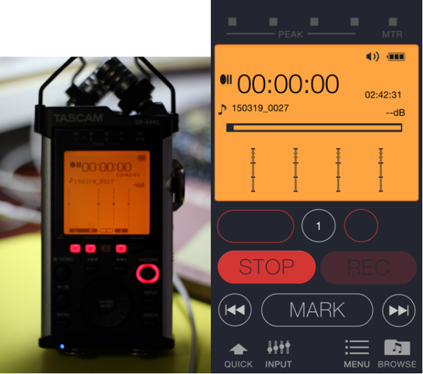 TASCAM DR-22WL以及DR-44WL是TASCAM最新推出的便攜式錄音機,內(nèi)置一對XY制式的立體聲電容話筒,最高支持96k/24bit的采樣格式,其中DR-44WL還配備一對XLR外接輸入,可以最多同時進行4軌錄音。其中最受矚目的當然是其搭載的WIFI無線遙控功能,可以用于遙控錄音與文件傳輸。