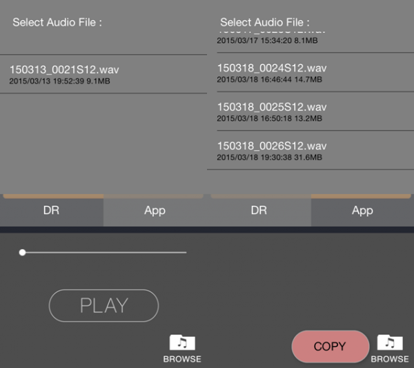 連接上DR-44WL之后,可以在DR control上瀏覽DR-44WL上的文件,可以點擊copy按鈕將文件復制至手機上。(如圖二十)