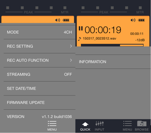 目前DR control有IOS以及Android兩種版本,可以在各自的APP市場以及TASCAM官網(wǎng)下載,這里我們使用IOS上的DR control作為參考,目前最新的版本是1.1.2buil1036。