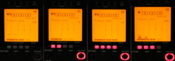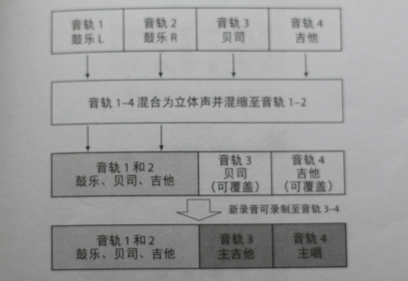 在4ch模式中最多可以錄制:4軌單聲道、2軌立體聲或者1軌立體聲+2軌單聲道。