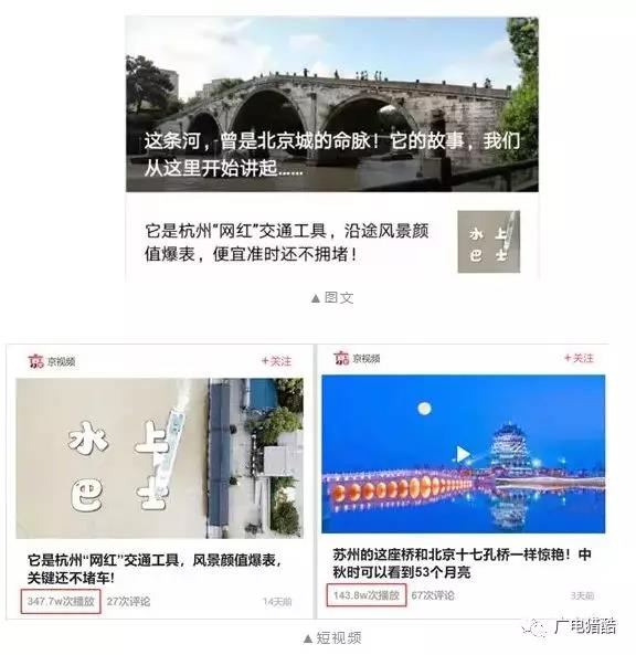 同時(shí),新媒體作品也是異彩紛呈。制作出以“大運(yùn)河”為主題的手繪H5產(chǎn)品,讓用戶模擬游覽大運(yùn)河,虛擬體驗(yàn)兩岸秀美風(fēng)光;系列短視頻報(bào)道《愛(ài)上大運(yùn)河之遇見(jiàn)城市的美》聯(lián)動(dòng)電視專題播發(fā),10集短視頻報(bào)道語(yǔ)態(tài)輕松,從另一視角展現(xiàn)大運(yùn)河沿線城市之美,播放量累計(jì)高達(dá)1119萬(wàn)。各省市融媒體中心在微博共同推出“愛(ài)上大運(yùn)河”微博專屬話題,截至9月18日,微博話題累計(jì)閱讀量達(dá)1657萬(wàn),相關(guān)視頻累計(jì)播放量近4000萬(wàn),形成了融媒體規(guī)模效應(yīng)。