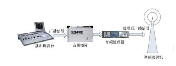 因此,在播出鏈路中增加音頻處理器,獲得最高可達(dá)到CD質(zhì)量的聲音廣播節(jié)目,調(diào)制度明顯可以隨意調(diào)大。對(duì)聲音進(jìn)行處理,來獲得最佳音質(zhì)。