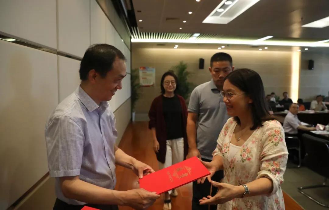 圖為:安徽廣播電視臺(tái)黨委書(shū)記、臺(tái)長(zhǎng)、總編輯聶慶義為融媒體工作室頒發(fā)證書(shū)