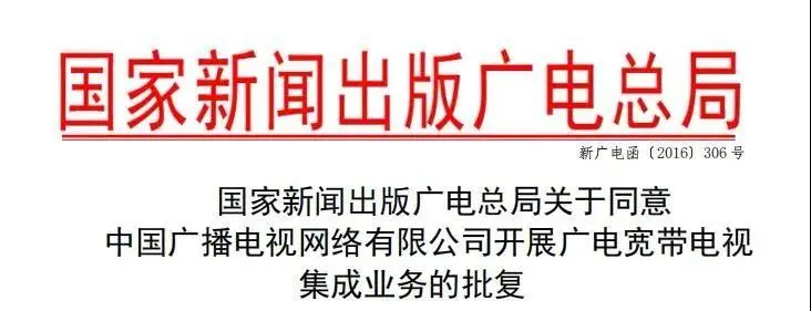 最早是2016年8月份的時候,廣電總局就批復(fù)同意中國廣播電視網(wǎng)絡(luò)有限公司開展廣電寬帶電視集成業(yè)務(wù)。