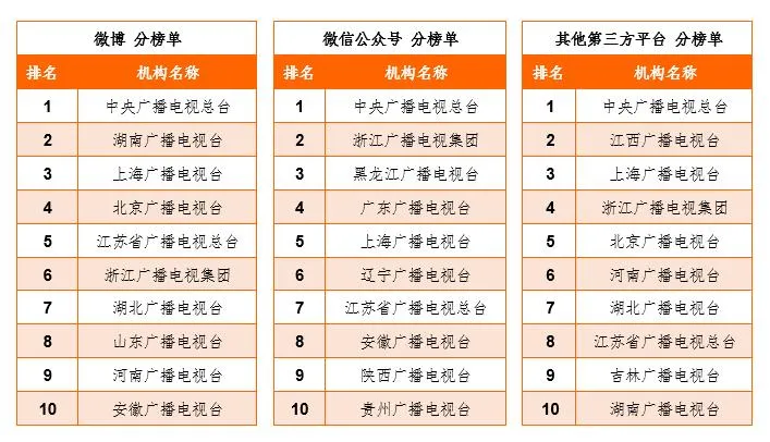 省級(jí)以上廣電機(jī)構(gòu)網(wǎng)絡(luò)傳播力分榜單:“兩微”和其他第三方平臺(tái)