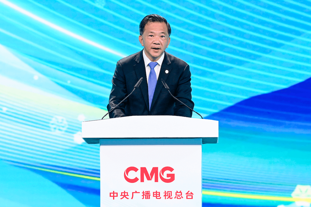 △中宣部副部長(zhǎng)、中央廣播電視總臺(tái)臺(tái)長(zhǎng)兼總編輯慎海雄致辭