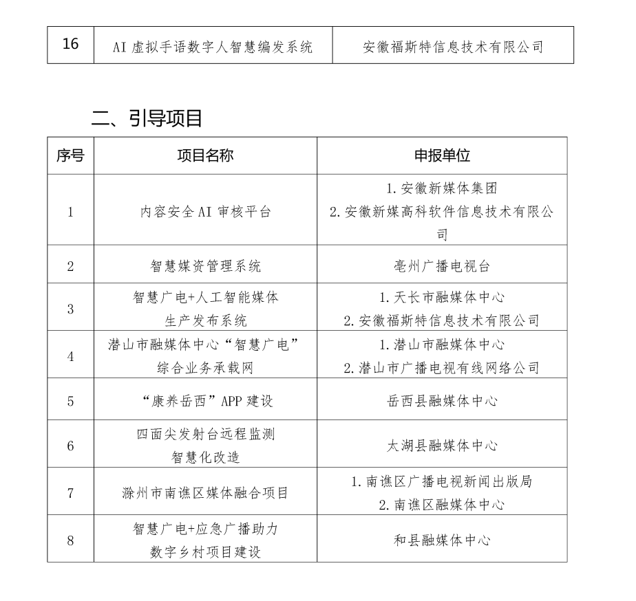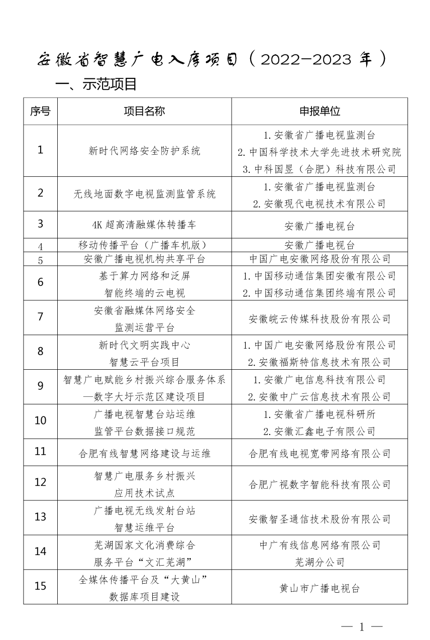 安徽省智慧廣電項(xiàng)目庫(kù)(2022-2023年)公布,中國(guó)廣電安徽公司多個(gè)項(xiàng)目入選