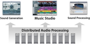 Logic 7最革命性的功能是什么?分布式音頻處理顯然是其中之一,只要有一臺蘋果電腦安裝了Logic 7,那么就可以使通過以太網(wǎng)連接的其它蘋果電腦協(xié)助處理音頻數(shù)據(jù),而不需要其它蘋果電腦安裝昂貴的Logic 7——只要安裝免費的Logic Node Performance Patch軟件即可。這比Steinberg興師動眾鼓搗出來的VST SystemLink每臺電腦都要安裝音樂軟件省錢的多的多。