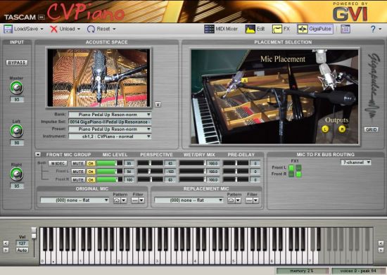 GVI是Giga Virtual Instrument的簡稱,也就是插件版的GigaStudio。而CVPiano則是Continuous Velocity Piano(持續(xù)力度鋼琴)的簡稱,一個用GVI做外殼的插件,利用GVI的采樣引擎的鋼琴插件,支持VSTi和RTAS格式,當(dāng)然你也可以獨(dú)立運(yùn)行CVPiano,但你沒可能用CVPiano去加載其它GVI音色或是Giga音色,因為它只能回放。