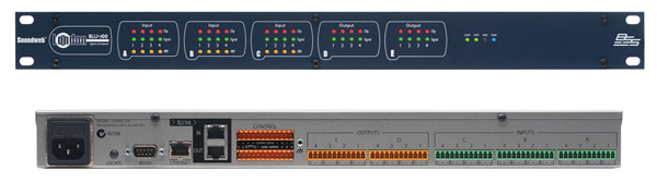 帶如同其他型號(hào)的Soundweb London設(shè)備一樣,12個(gè)邏輯輸入控制和6個(gè)邏輯輸出控制可以讓BLU-100方便的兼容GPIO設(shè)備。后面板的RS-232端口可以讓BLU-100與第三方控制設(shè)備完美結(jié)合,也可以簡(jiǎn)單的控制一些第三方設(shè)備如投影機(jī),顯示器,燈光控制設(shè)備等。以太乙網(wǎng)端口除子用于配置連接、控制和監(jiān)測(cè),還可以用于一些使用IP控制協(xié)議的第三方控制系統(tǒng)中。
