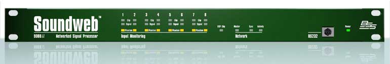Soundweb 的 9088iis 數(shù)字信號處理單元是 Soundweb 系統(tǒng)的核心。作為一個獨立的1U機架空間設設備,Soundweb 9088iis 配置了完善的 8 信道輸入、8 信道輸出和 1 個高性能 DSP 處理器,網(wǎng)絡連接和其它 Soundweb 設備的信號分配,模塊的 GPI 控制接口的 RS232 接口,可用于連接 PC 或 AMX/Crestron 等外部控制設備。