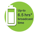 VIA帶有一個(gè)可再充智能鋰電池,可以提供高達(dá)6個(gè)半小時(shí)*的廣播時(shí)間。延長(zhǎng)電池使用時(shí)間,可通過以下措施:屏幕休眠時(shí)間,屏幕亮度控制,自動(dòng)低電池節(jié)電。
