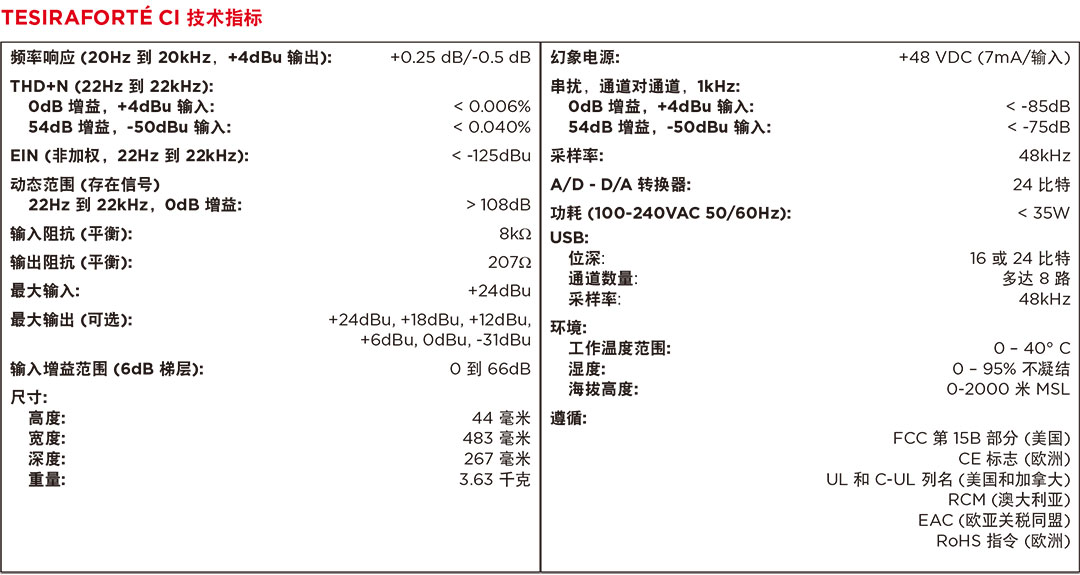 TesiraFORTé? CI是一款固定的I/O DSP,配備12路支持回聲消除(AEC)的模擬輸入和8路模擬輸出,并包含多達(dá)8路可配置USB音頻通道。借助USB音頻,TesiraFORTé直接與USB音頻主機(jī)連接,并可充分利用當(dāng)今最先進(jìn)的會(huì)議解決方案。TesiraFORTé CI還提供了廣泛的音頻處理,包括但不限于:信號(hào)路由和混音、均衡、濾波、動(dòng)態(tài)和延遲以及控制、監(jiān)控和診斷工具,均通過Tesira軟件配置。TesiraFORTé CI是中小型房間的最佳選擇,這類房間需要使用語(yǔ)言擴(kuò)聲和分區(qū)擴(kuò)聲的高品質(zhì)音頻解決方案(如會(huì)議室或理事會(huì)會(huì)議廳)。