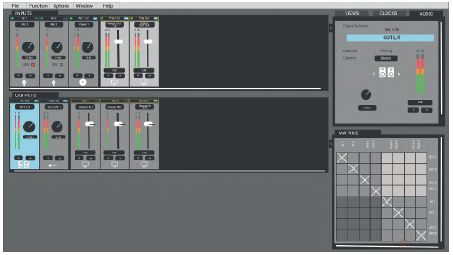 | 主要功能 零延遲板載混音器 硬件監(jiān)控 調(diào)整輸入輸出電平 監(jiān)聽和錄音前的混音 時鐘和同步選擇 完整的 I/O 矩陣允許將輸入混合到任何輸出 混音器輸入: 模擬輸入、AES3 輸入和 DAW 播放通道 混音器輸出: 模擬輸出、AES3 輸出和 DAW Record 通道 | ||
