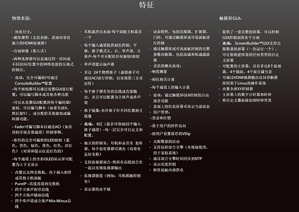可選的Remote GSX是 一種多點(diǎn)觸摸虛擬控制臺,可鏡像GSX控制臺,在快節(jié)奏,多操作員的表演和制作過程中獲得獨(dú)立但共享的用戶體驗(yàn)。